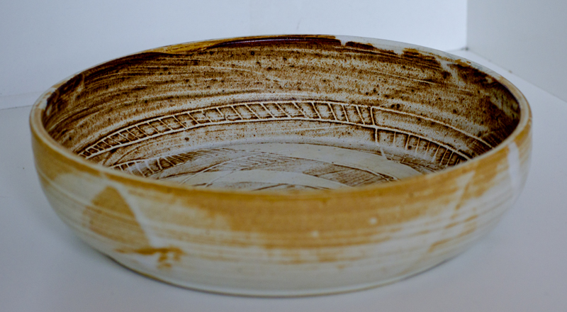 | Large bowl with Sgraffito Design inside with Iron Slip - R250 | Large bowl with Sgraffito Design inside withIron Slip - R250 | Black Stoneware glazed Chessedish R250 |