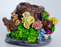 | Hand-painted, Stoneware-fired tree trunk with lilies, roses, bluebells and toadstools | |||